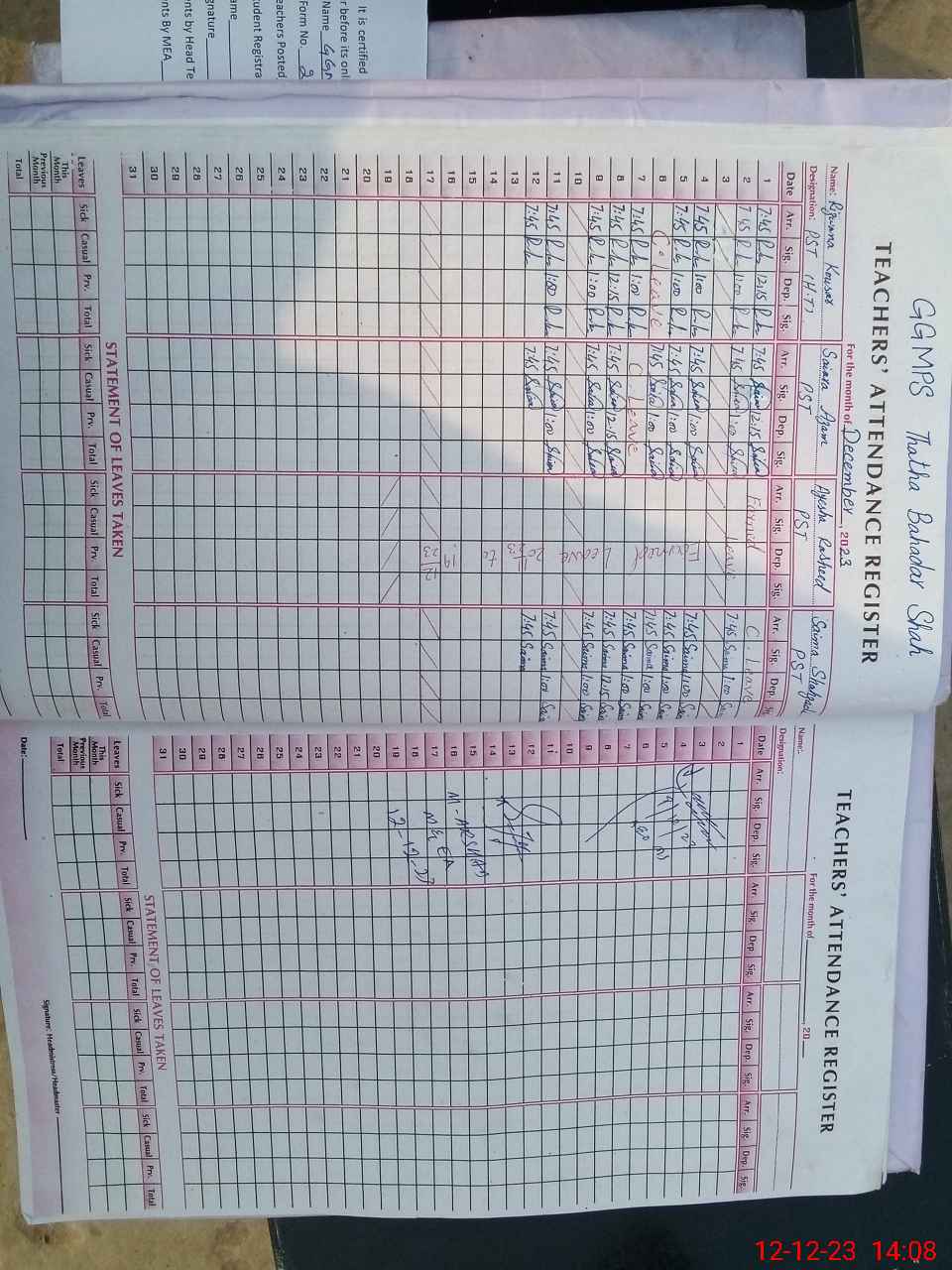 | Name: SA**** AZ**** Designation: (School Headmaster's/Headmistress's) PST Phone/Cell Number: 03**** |