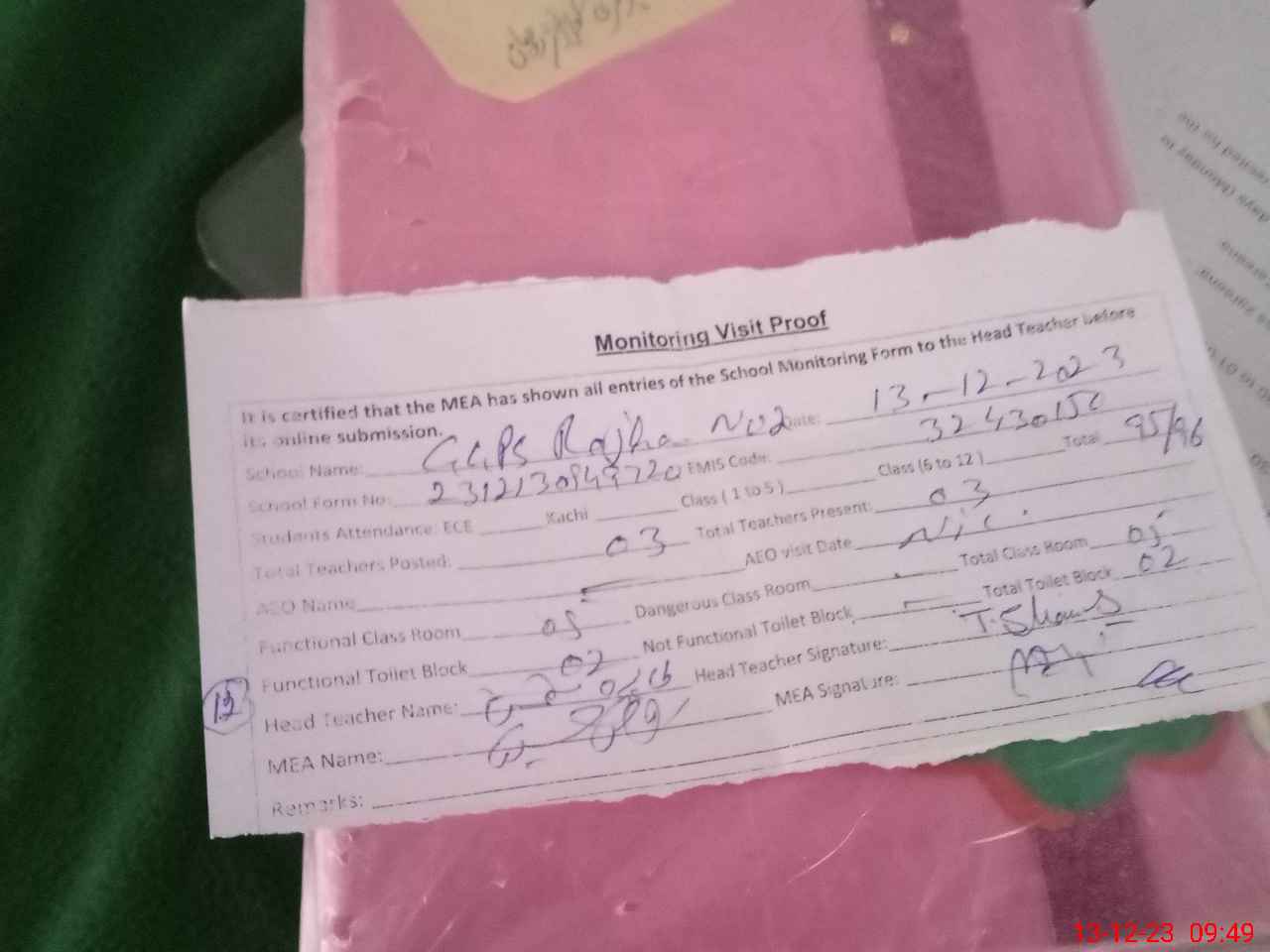 | EMIS Code: 32430150 | Name of School: GGPS ROJHAN NO. 2 | |||