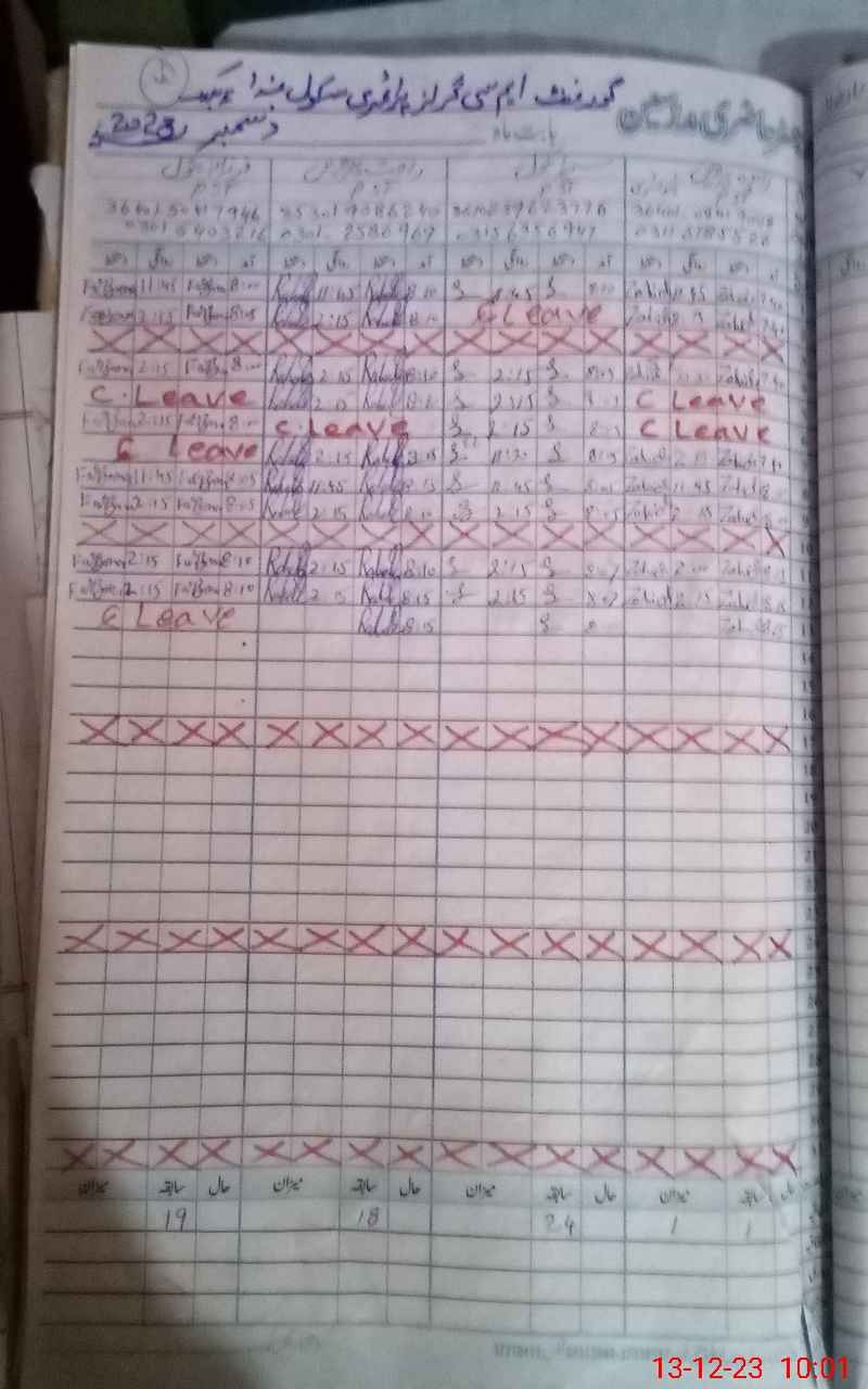 | CNIC | Full Name | Designation | R/C | Absence During Last Calender Month |