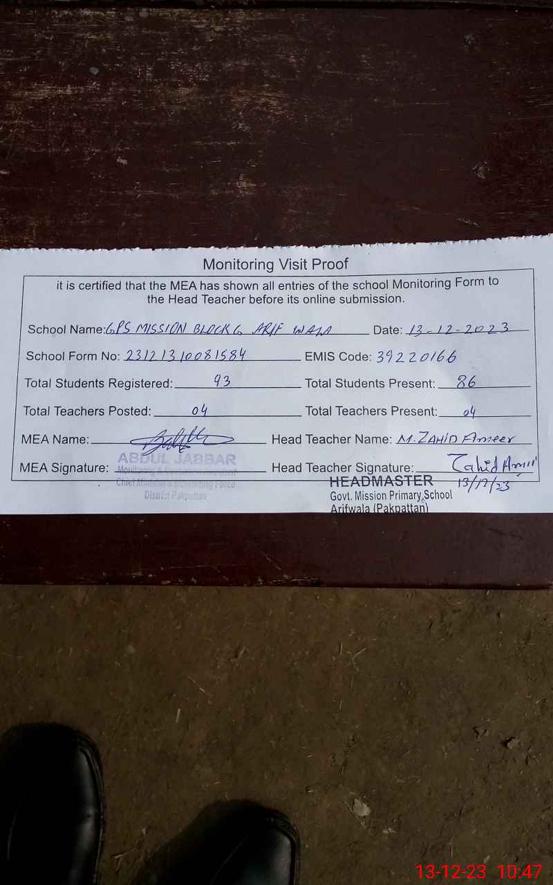 | EMIS Code: 39220166 | Name of School: GPS MISSION BLOCK G | |||