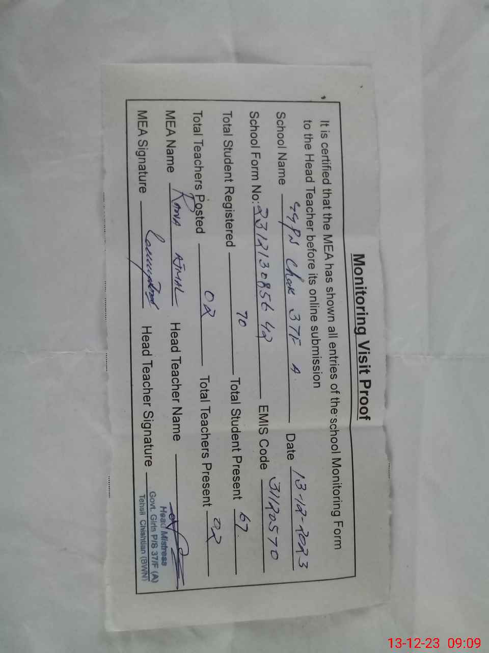 | EMIS Code: 31120570 | Name of School: GGPS CHAK NO. 37/FA | |||