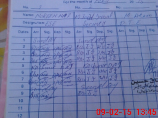 | CNIC | Full Name | Designation | R/C | Absence During Last Calender Month |