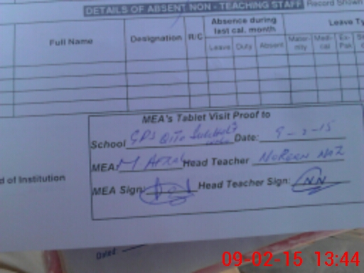 | Attendance Register | Head Teacher | MEA with School | Visit Proof |