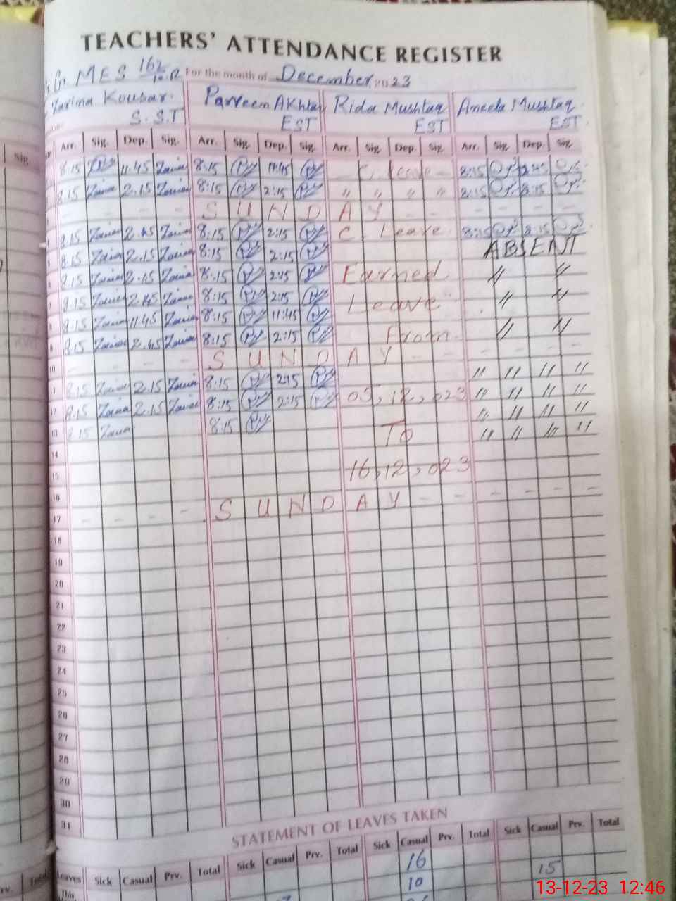 | 36**** | An**** Mu**** | 3 | 1 | 0 | 0 | 0 | 0 | 0 | 0 | 0 | 0 | 0 | Absent (Un-Authorized) |
