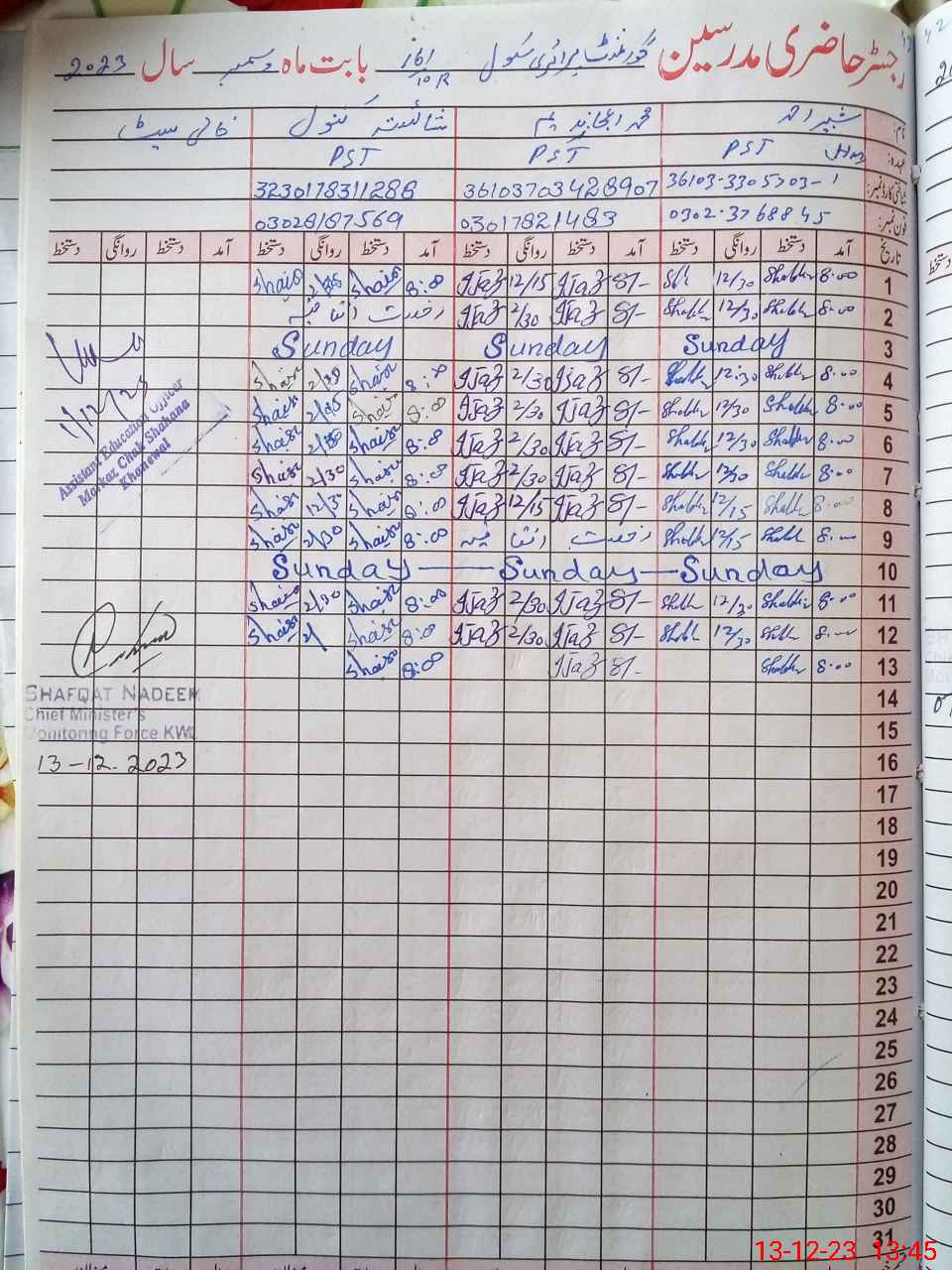 | Name: Sh**** Ka**** Designation: (School Headmaster's/Headmistress's) PST Phone/Cell Number: 03**** |