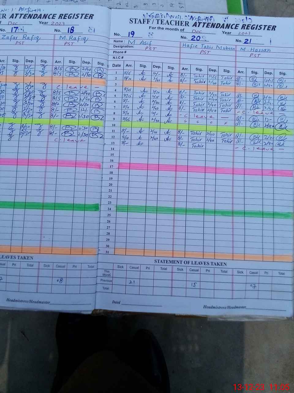 | CNIC | Full Name | Designation | R/C | Absence during last cal. month |