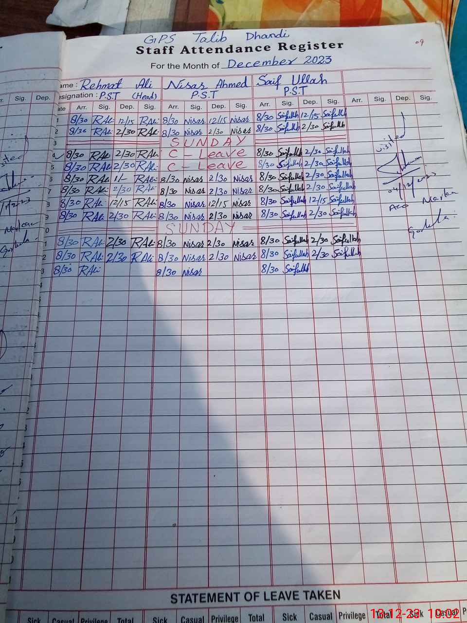 | Name: RE**** AL**** Designation: (School Headmaster's/Headmistress's) PST/PTC/JV Phone/Cell Number: 03**** |