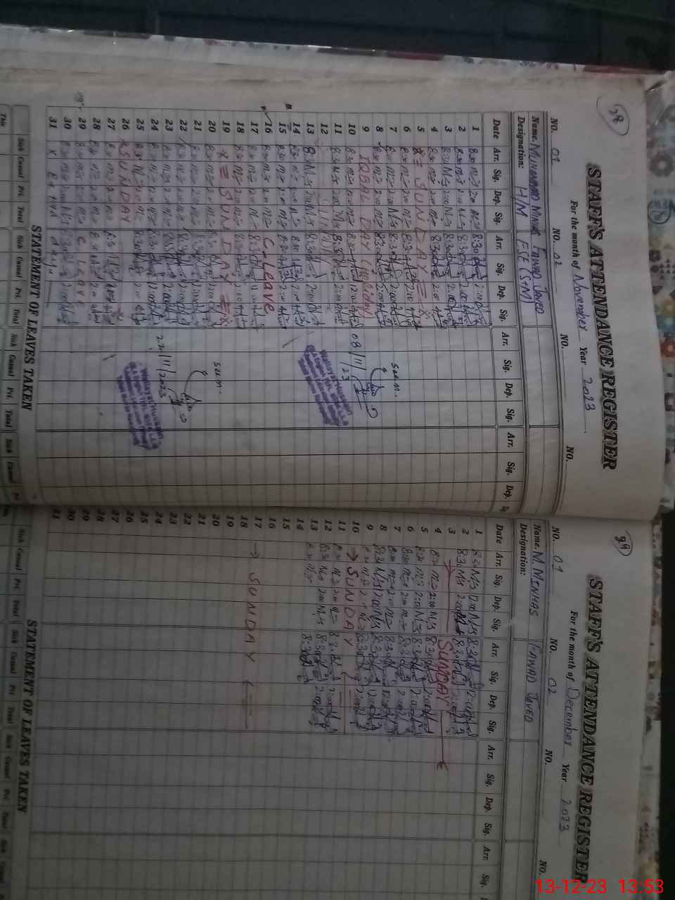 | CNIC | Full Name | Designation | R/C | Absence During Last Calender Month |