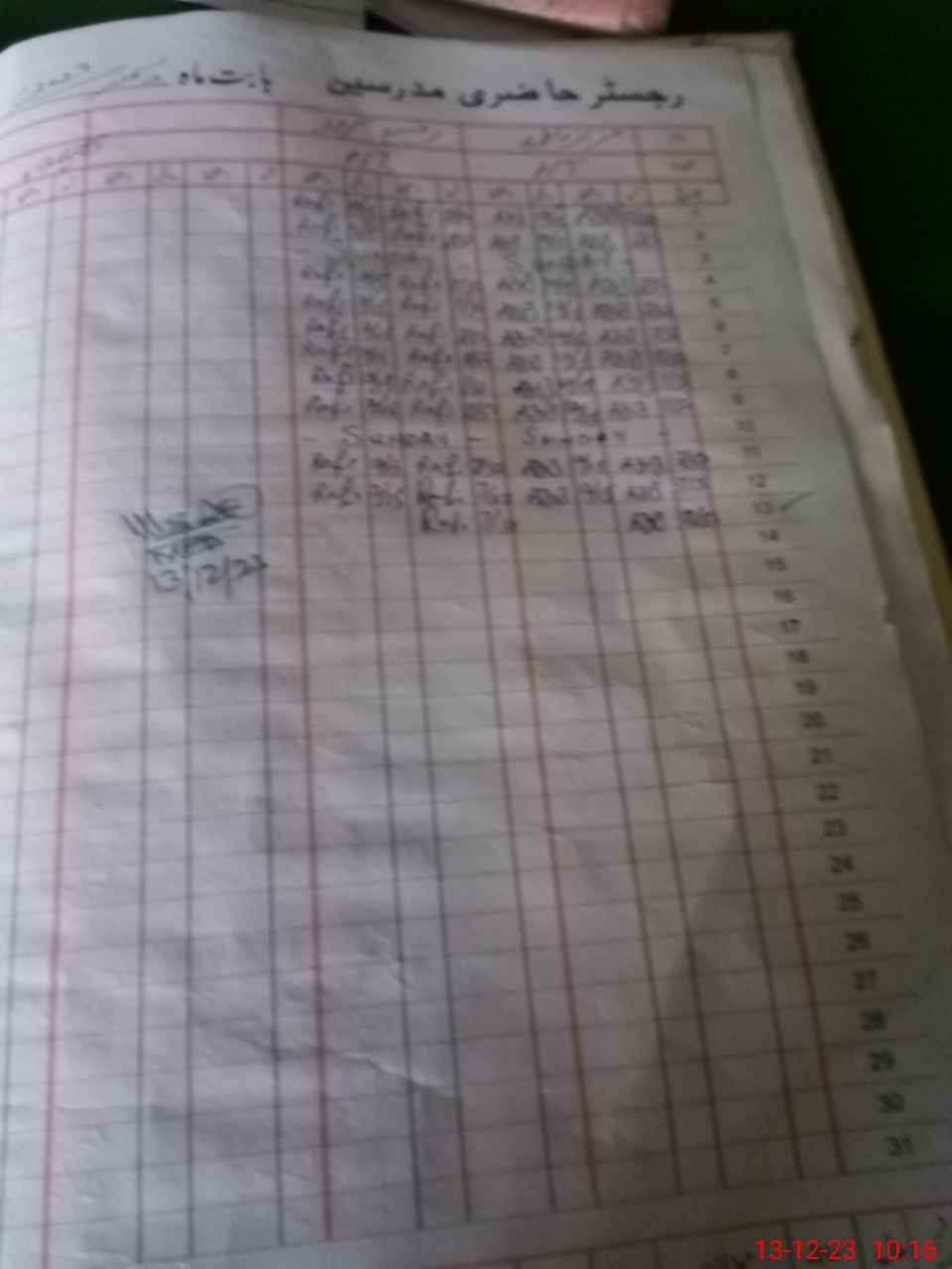 | CNIC | Full Name | Designation | R/C | Absence During Last Calender Month |