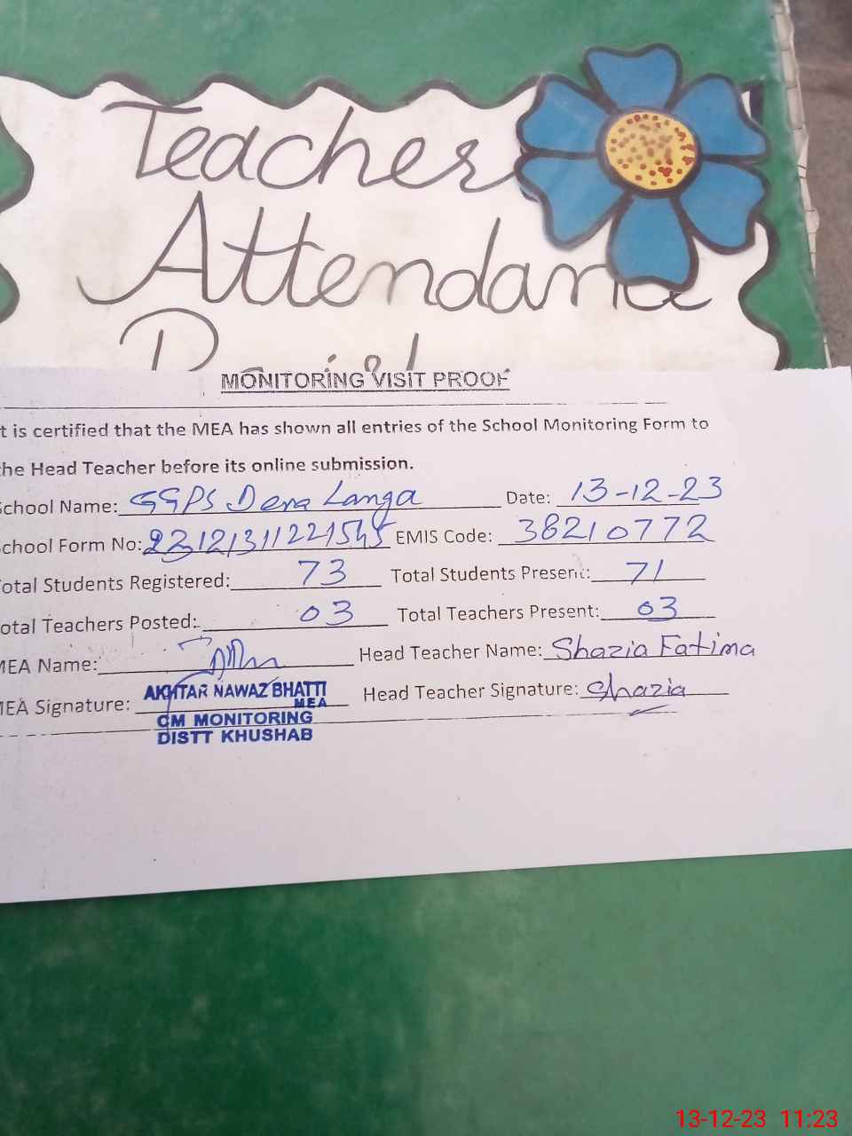 | EMIS Code: 38210772 | Name of School: GGPS DERA LANGA | |||