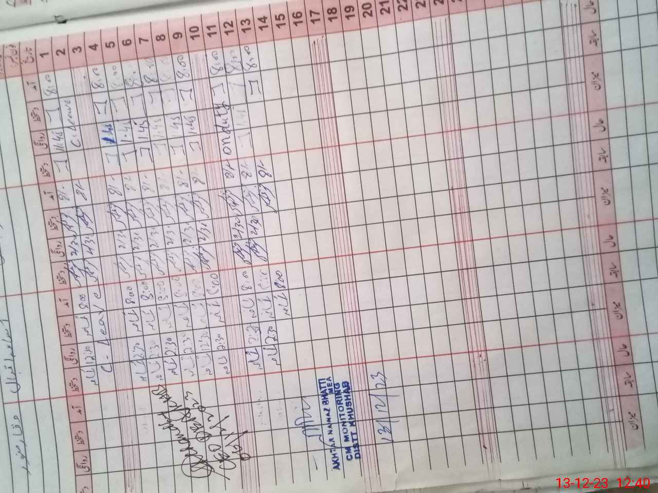 | CNIC | Full Name | Designation | R/C | Absence During Last Calender Month |