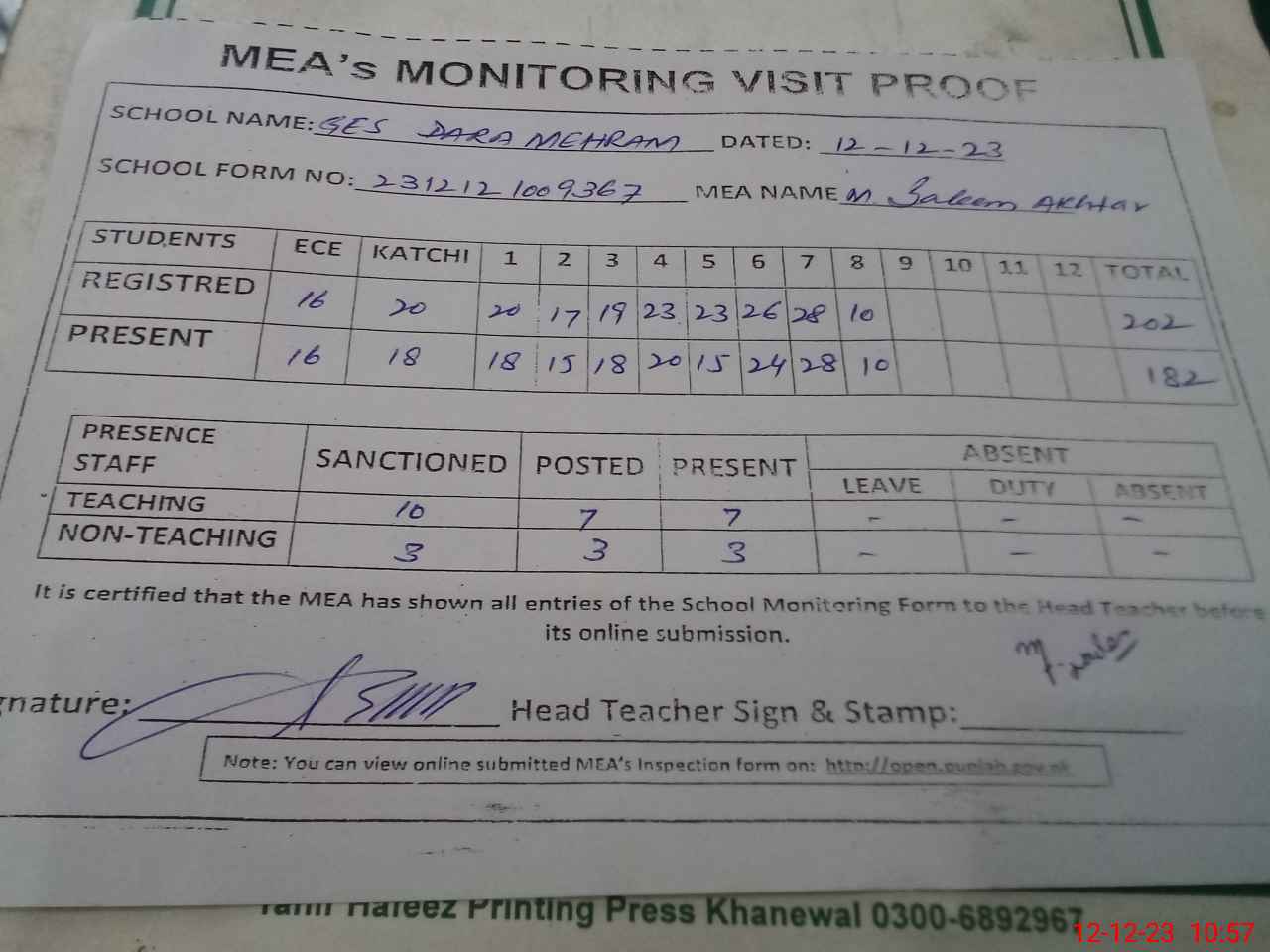 | EMIS Code: 36410074 | Name of School: GES DARA MEHRAM DARA, ABDUL HAKIM | |||