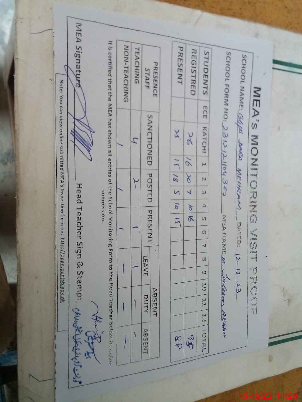 | EMIS Code: 36410472 | Name of School: GGPS DARA MEHRAM, ABDUL HAKIM | |||