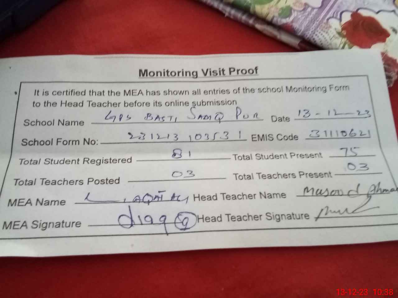| EMIS Code: 31110621 | Name of School: GPS BASTI SADIQ PUR | |||