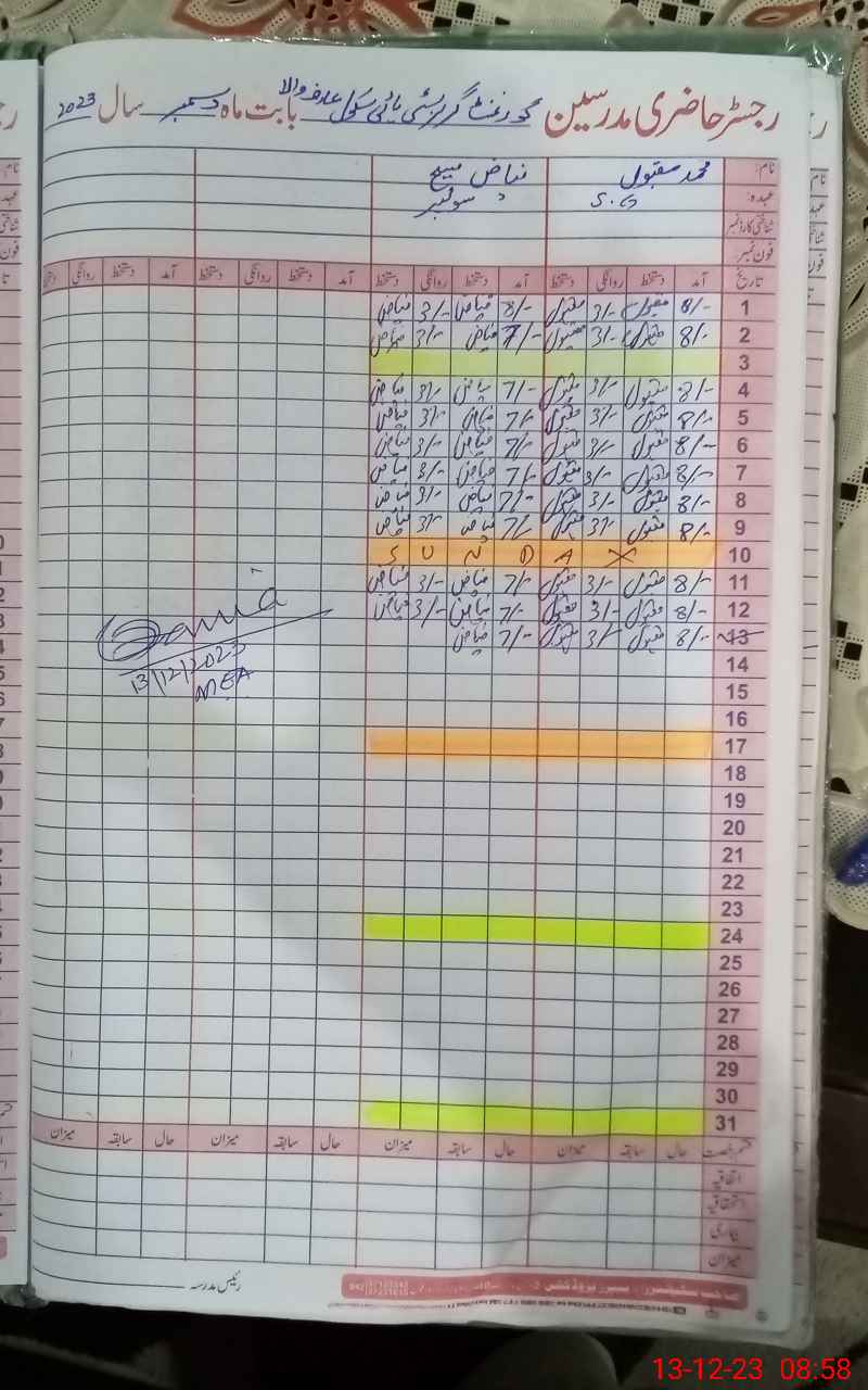 | Name: Sh**** yo**** Designation: (School Headmaster's/Headmistress's) SST( ARTS) Phone/Cell Number: 03**** |