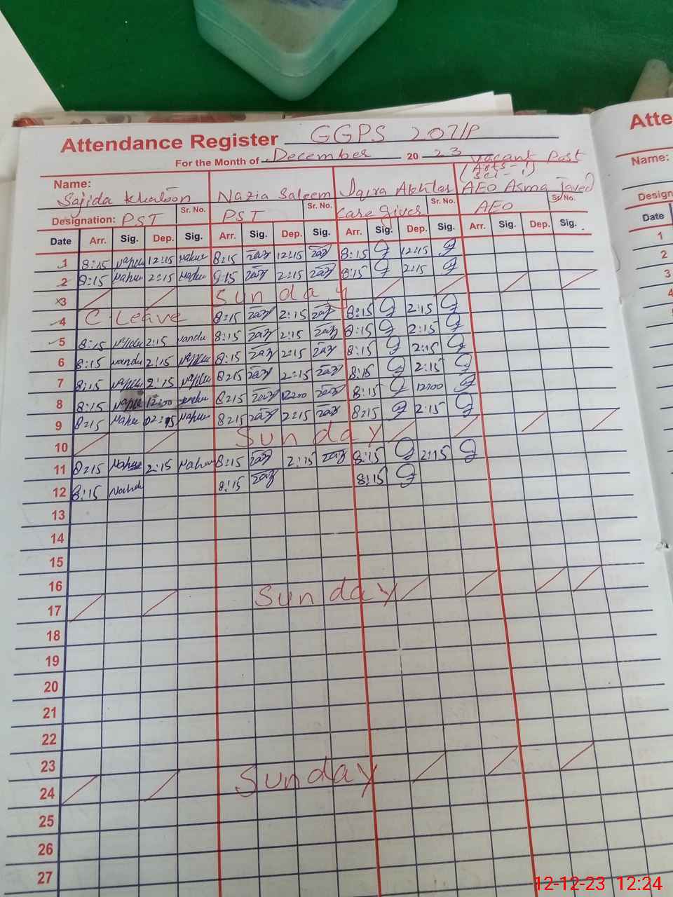 | CNIC | Full Name | Designation | R/C | Absence During Last Calender Month |