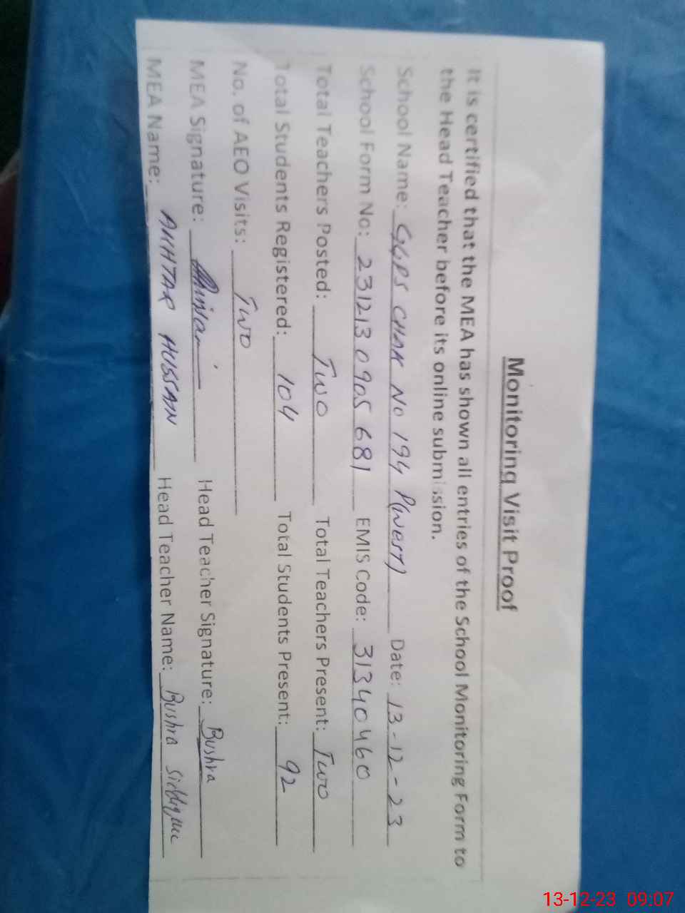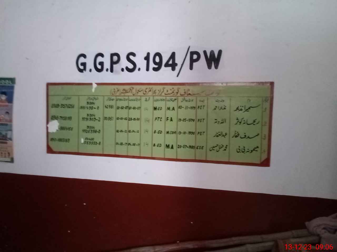 | EMIS Code: 31340460 | Name of School: GGPS CHAK NO. 194/P WEST | |||