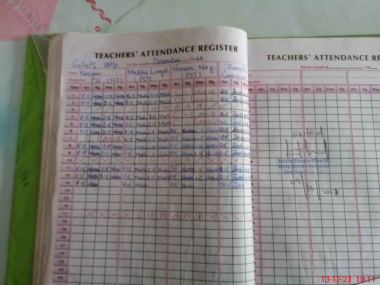 | CNIC | Full Name | Designation | R/C | Absence During Last Calender Month |