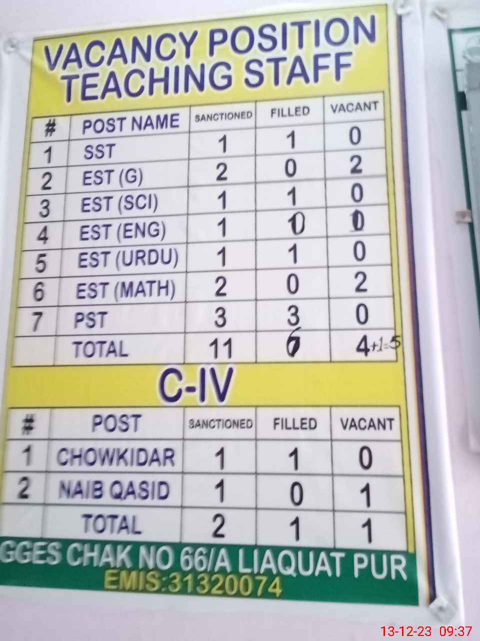 | EMIS Code: 31320074 | Name of School: GGES 66/A | |||