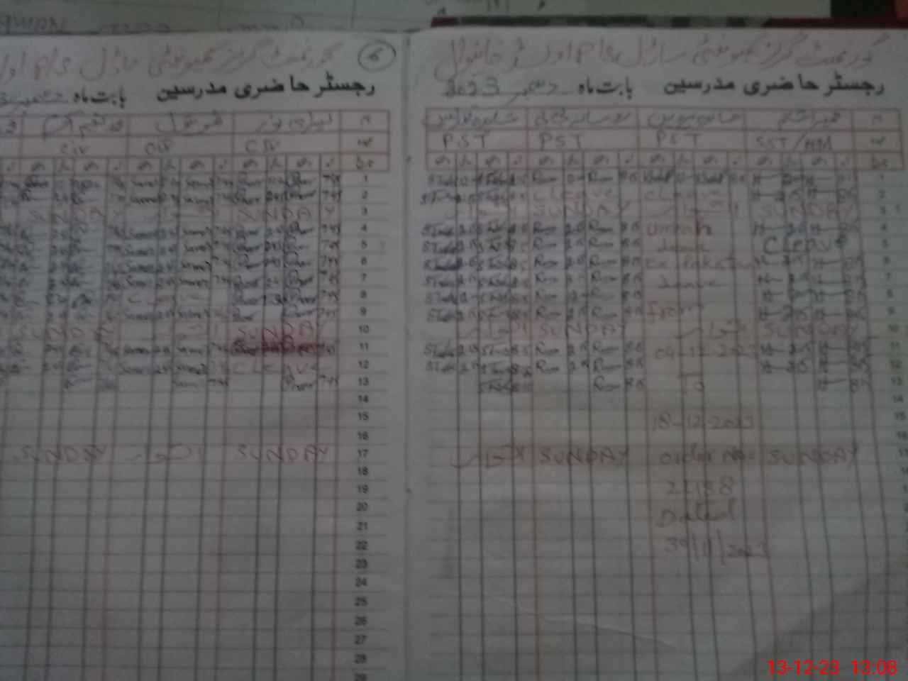 | CNIC | Full Name | Designation | R/C | Absence During Last Calender Month |