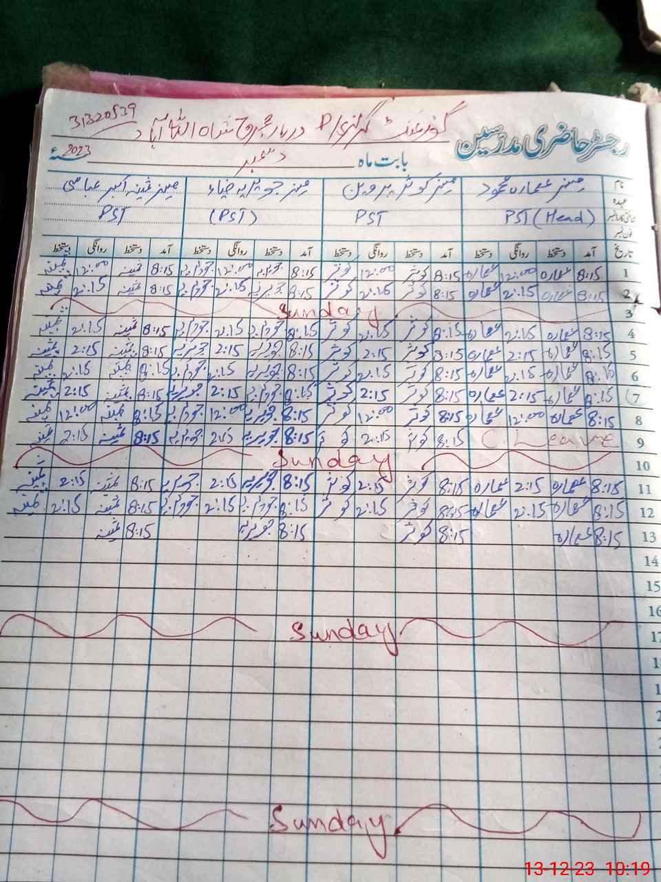 | CNIC | Full Name | Designation | R/C | Absence During Last Calender Month |