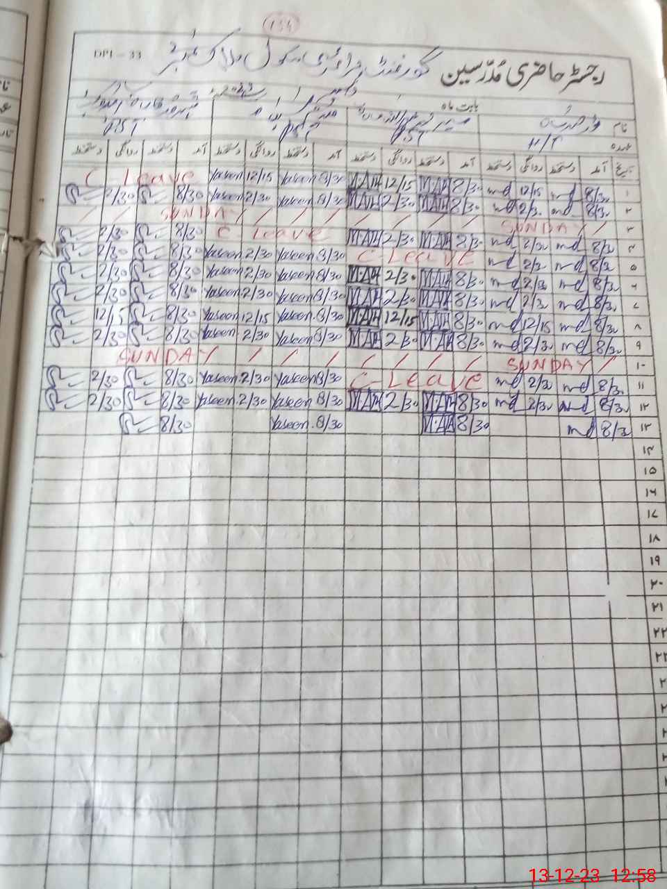 | Name: No**** Mu**** Sh**** Designation: (School Headmaster's/Headmistress's) PST Phone/Cell Number: 03**** |