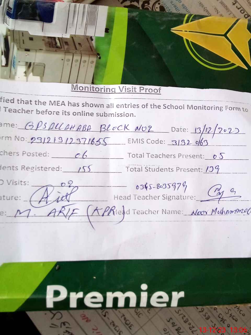 | EMIS Code: 31320163 | Name of School: GPS ALLAH ABAD BLOCK NO 2 | |||