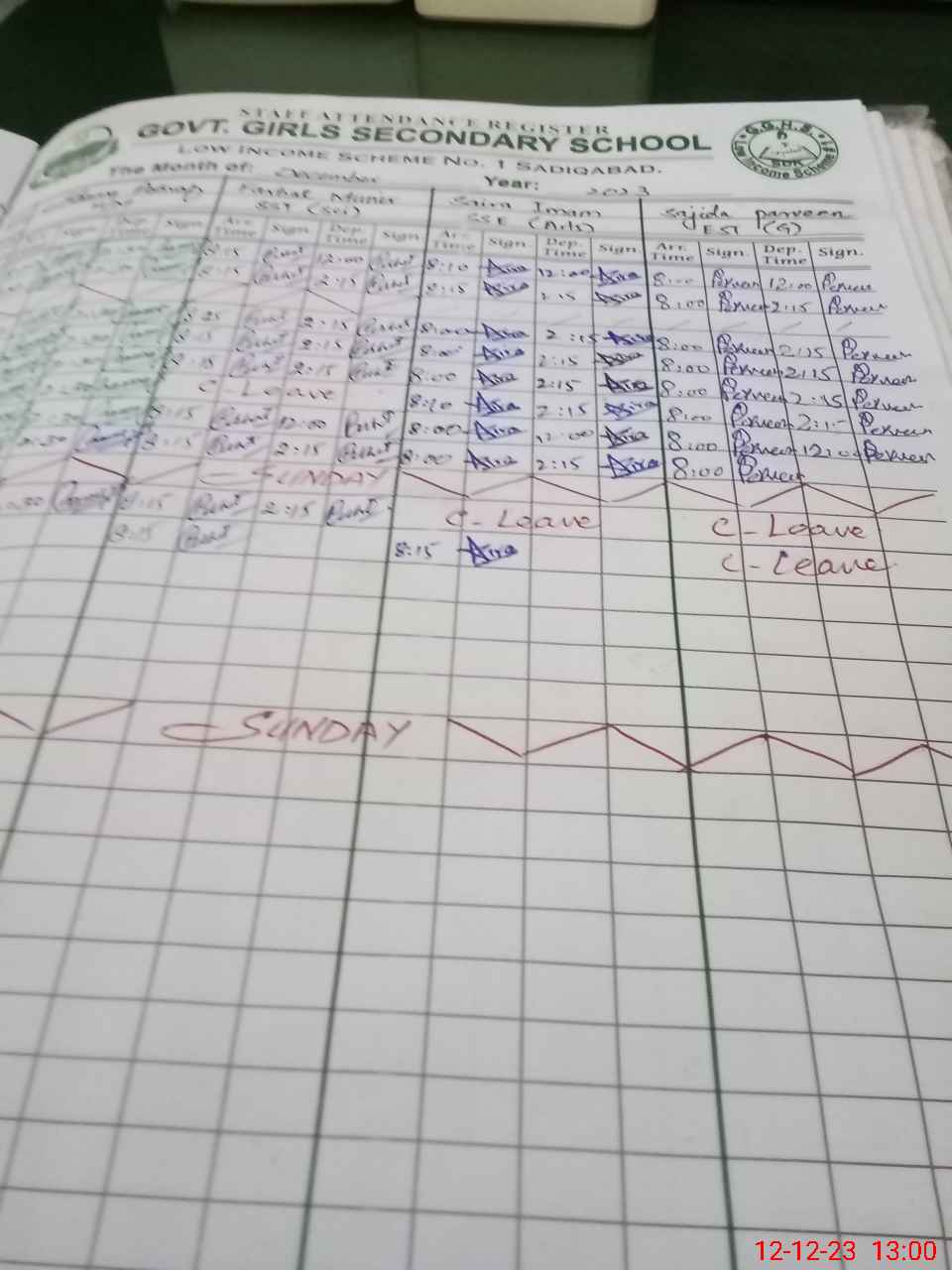 | CNIC | Full Name | Designation | R/C | Absence During Last Calender Month |