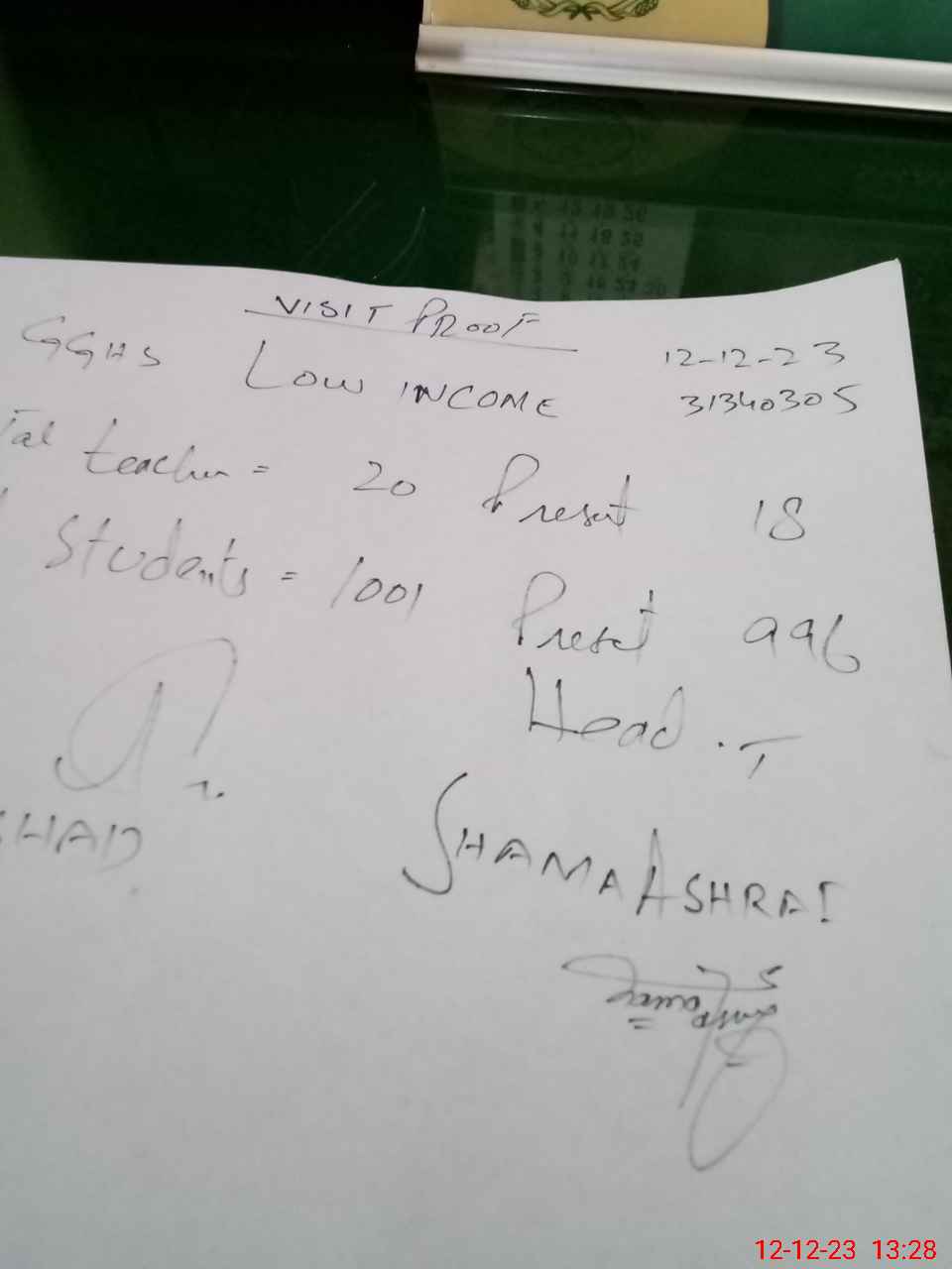 | Attendance Register | Head Teacher | MEA with School | Visit Proof |