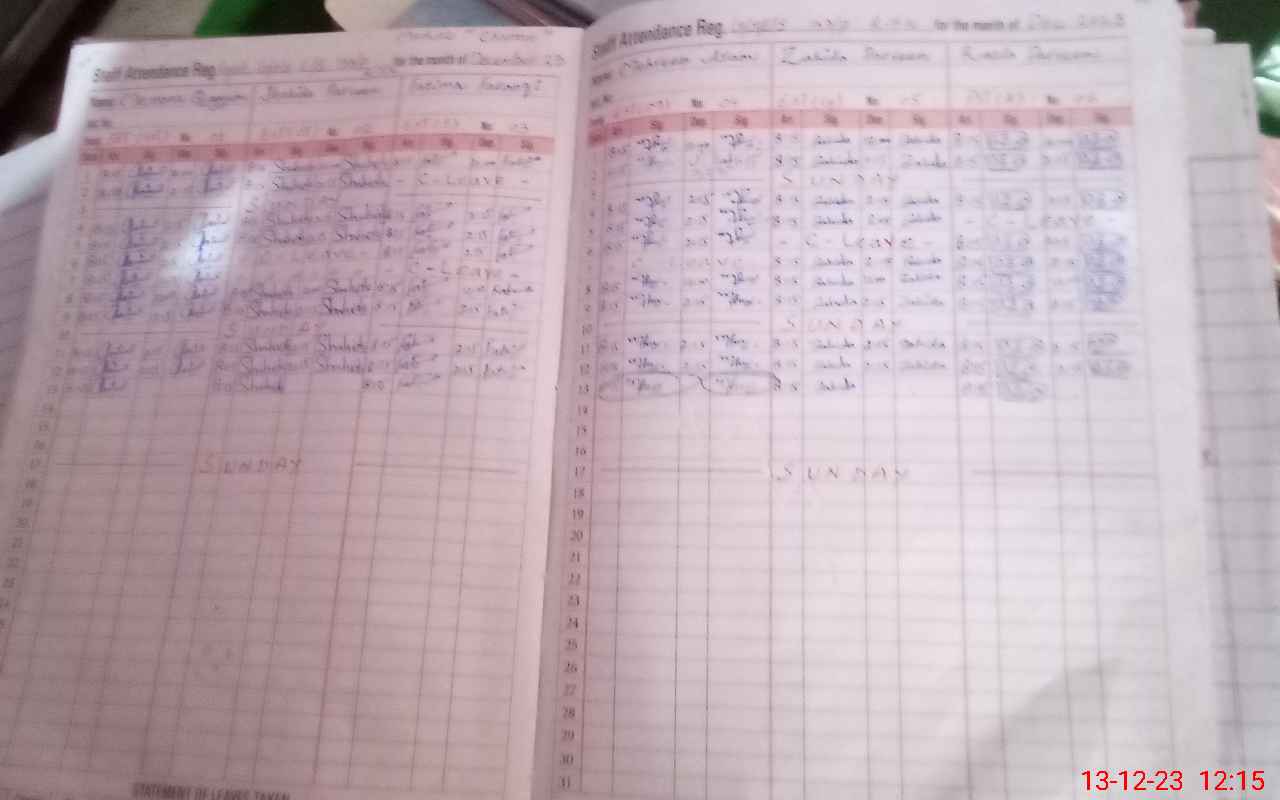| 36**** | Ma**** As**** | 3 | 1 | 0 | 0 | 0 | 0 | 0 | 0 | 0 | 0 | 0 | Absent (Un-Authorized) |