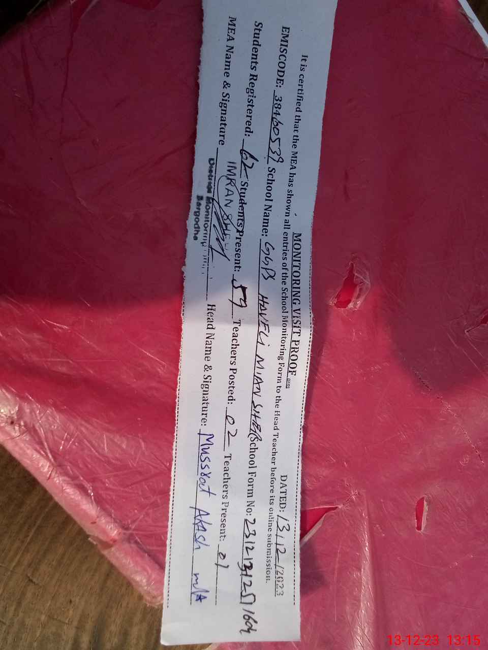 | Certified that this School was Inspected by the Undersigned MEA/DMO Today and the Information Stated Above is as Per Record. | |||||