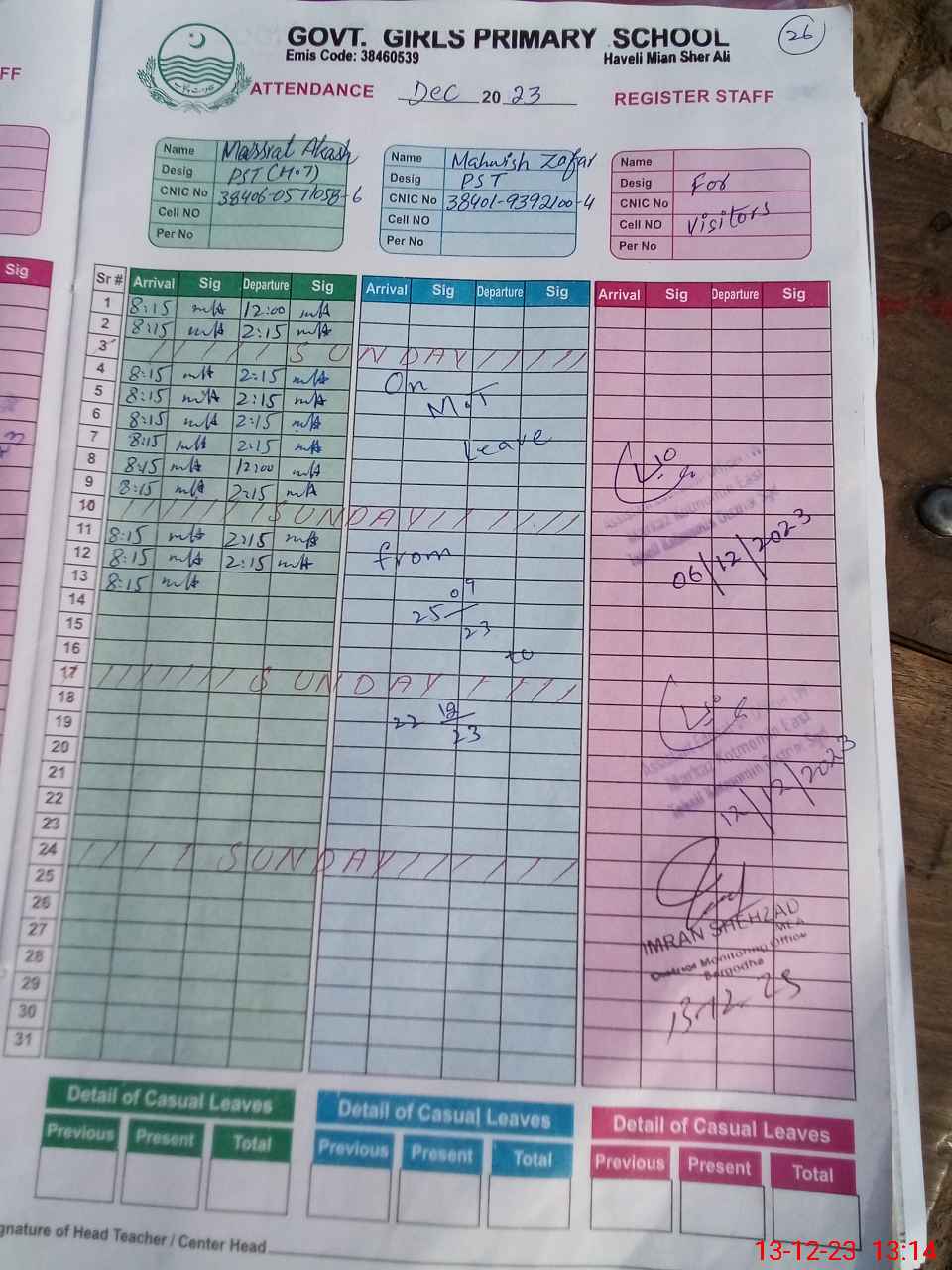 | Name: Mu**** Ak**** Designation: (School Headmaster's/Headmistress's) PST Phone/Cell Number: 03**** |