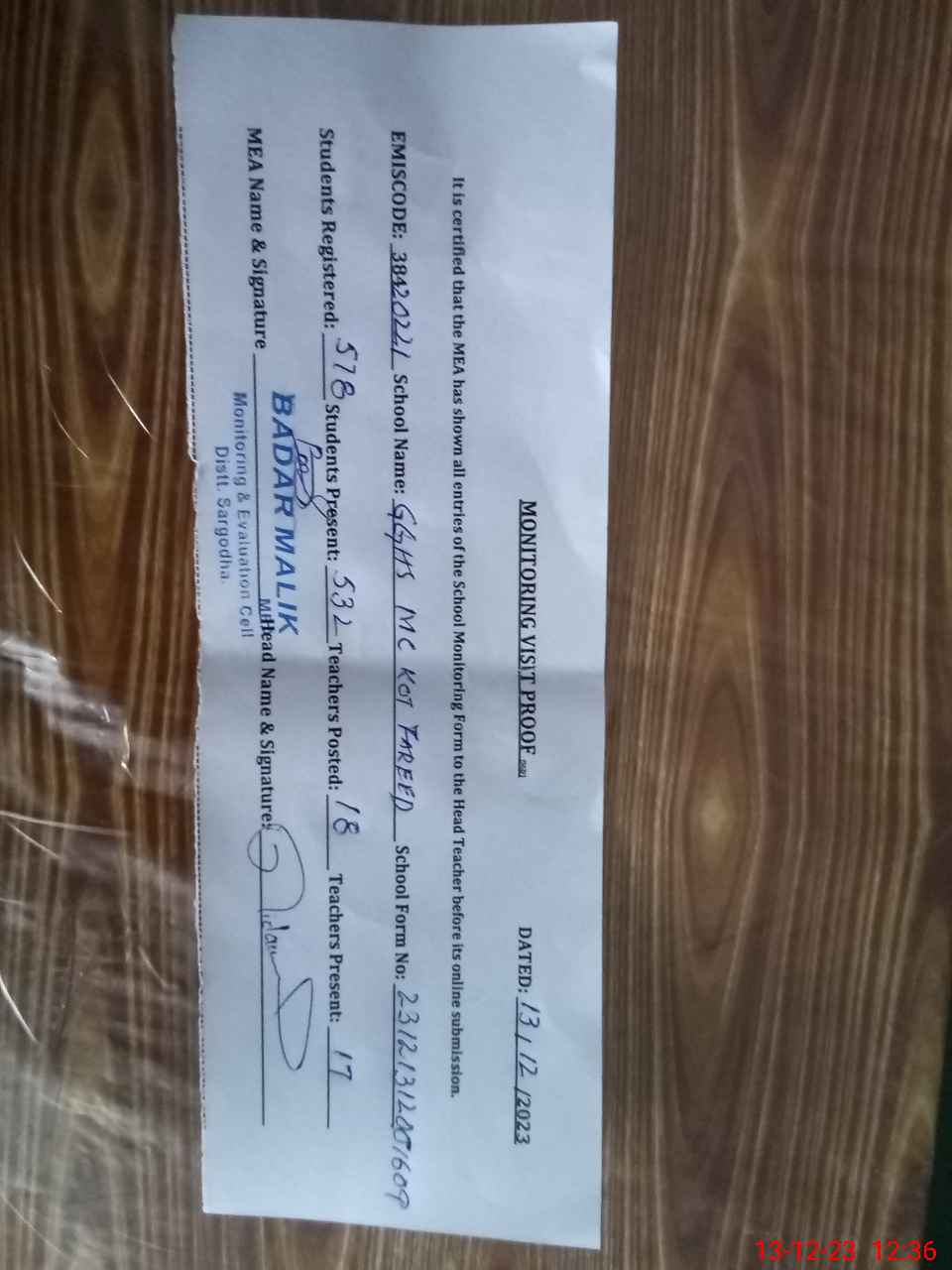 | EMIS Code: 38420221 | Name of School: GGHS MC KOT FAREED | |||