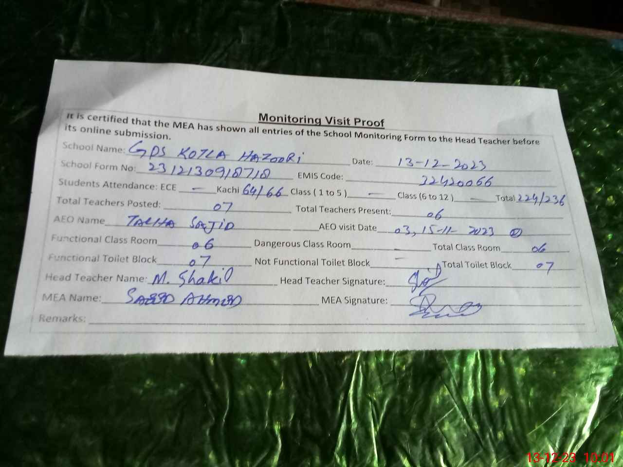| EMIS Code: 32420066 | Name of School: GPS KOTLA HAZOORI | |||