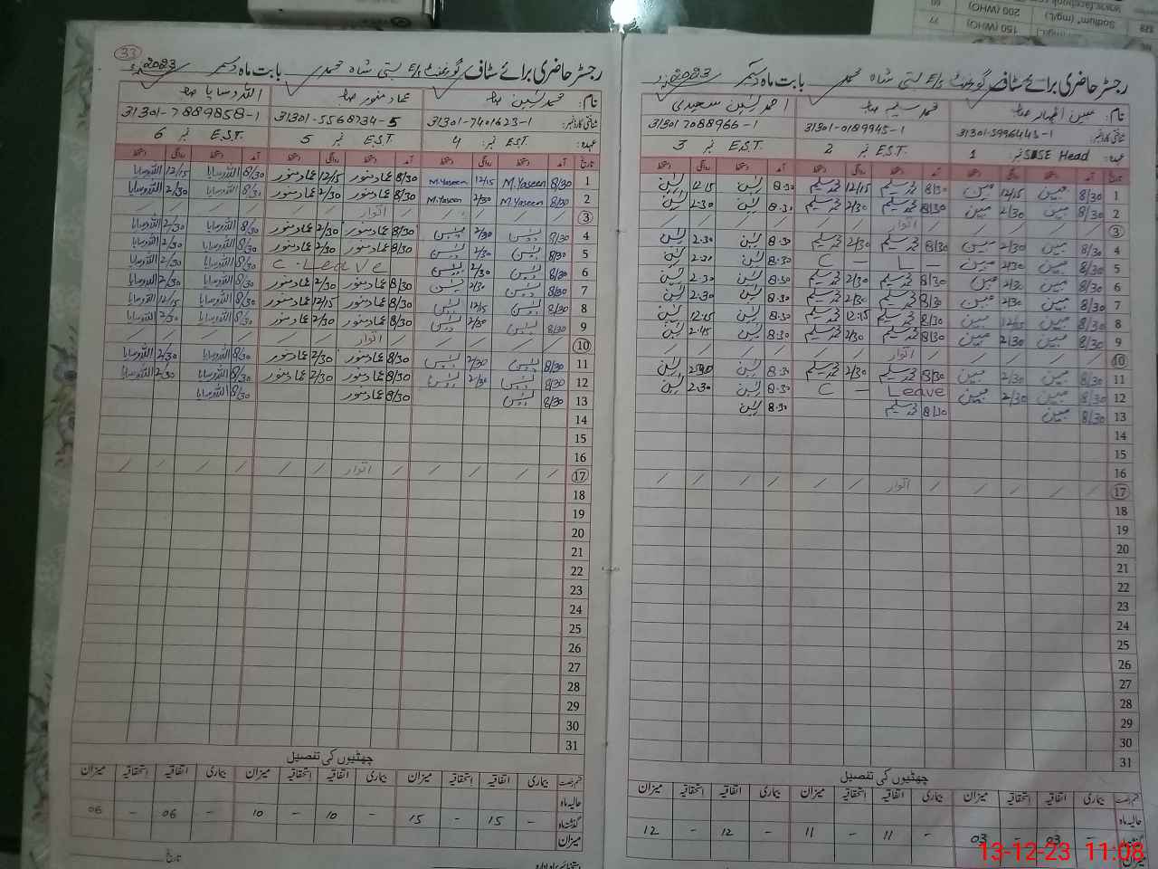| CNIC | Full Name | Designation | R/C | Absence During Last Calender Month |