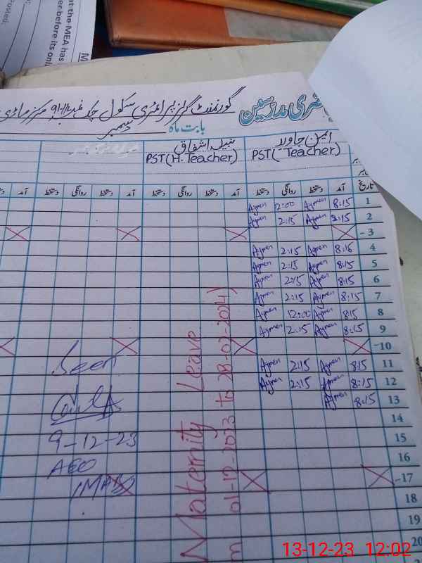 | Attendance Register | Head Teacher | MEA with School | Visit Proof |