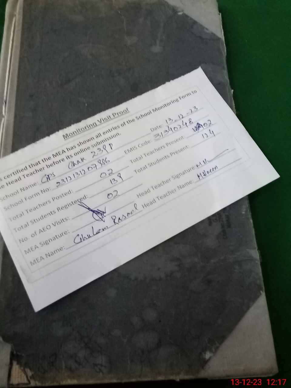 | EMIS Code: 31340248 | Name of School: GPS CHAK NO 239 P | |||