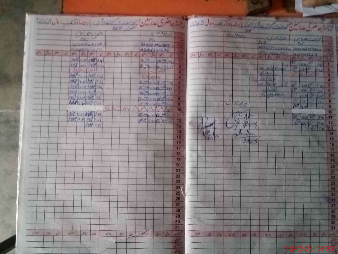 | CNIC | Full Name | Designation | R/C | Absence During Last Calender Month |