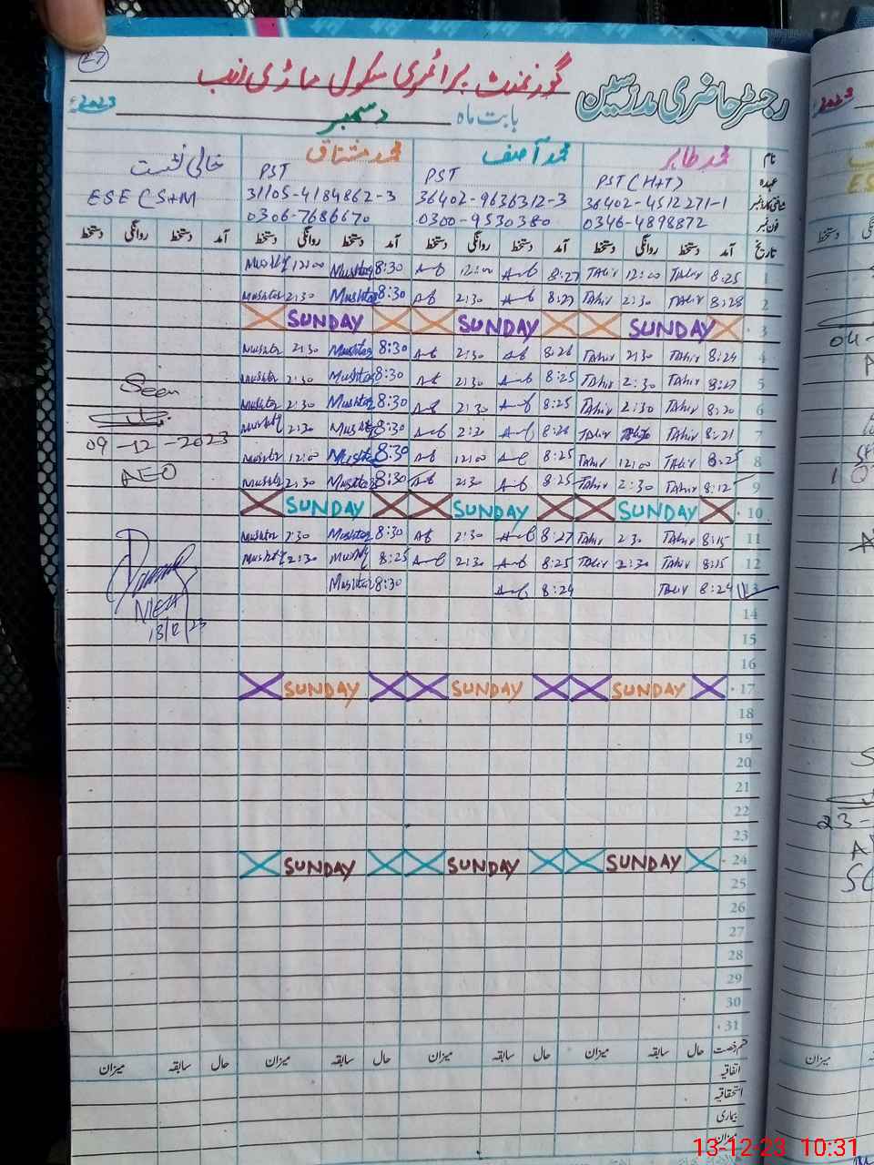 | Name: MU**** Mu**** Designation: (School Headmaster's/Headmistress's) PST Phone/Cell Number: 03**** |