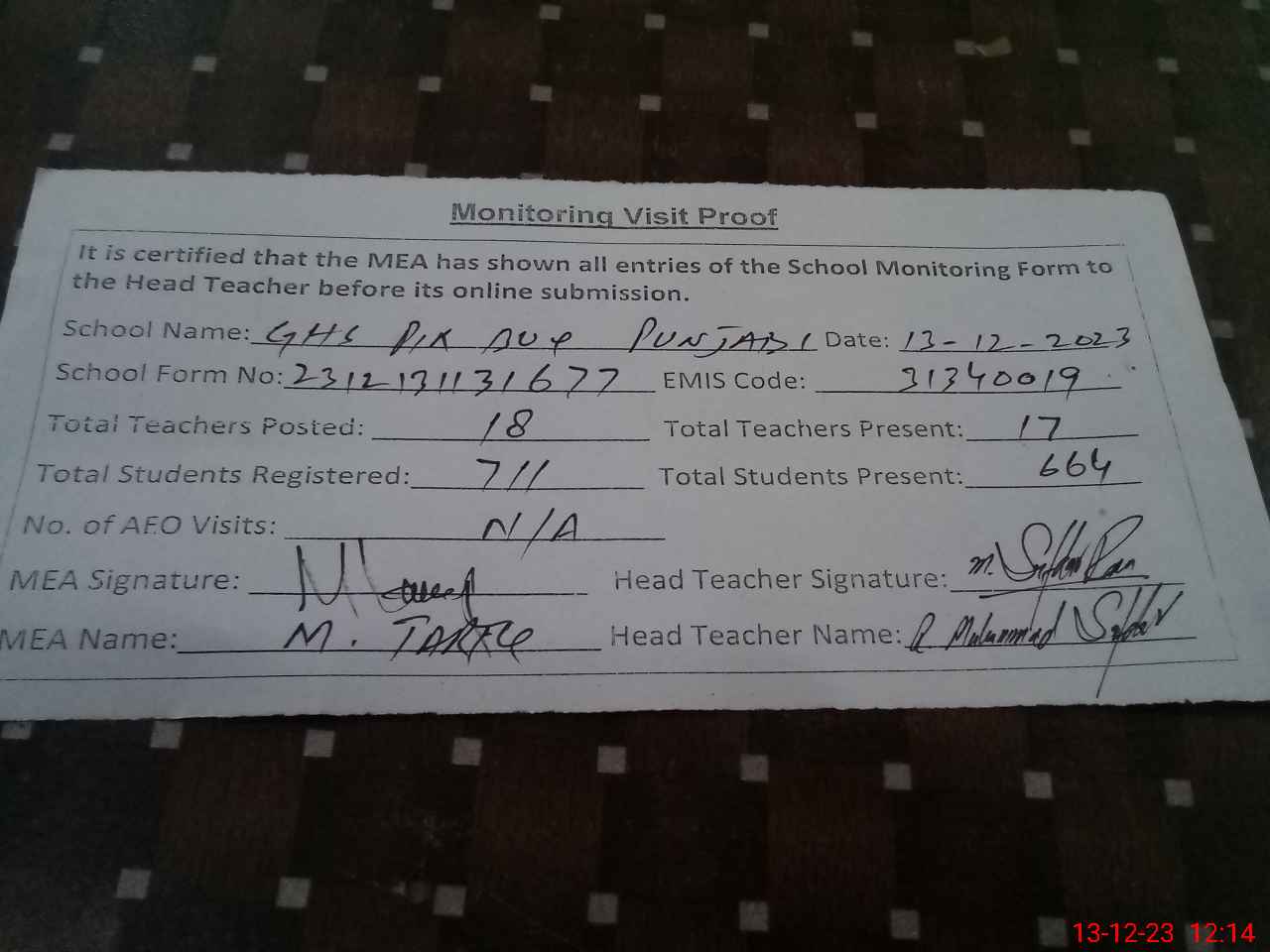 | EMIS Code: 31340019 | Name of School: GHS PEER BUKHSH PUNJABI | |||