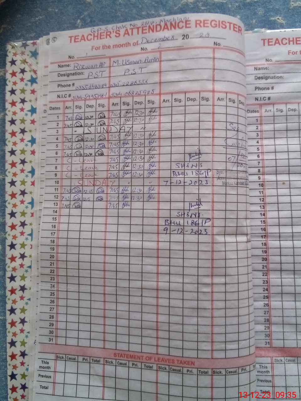 | Name: Ri**** Al**** Designation: (School Headmaster's/Headmistress's) PST Phone/Cell Number: 03**** |