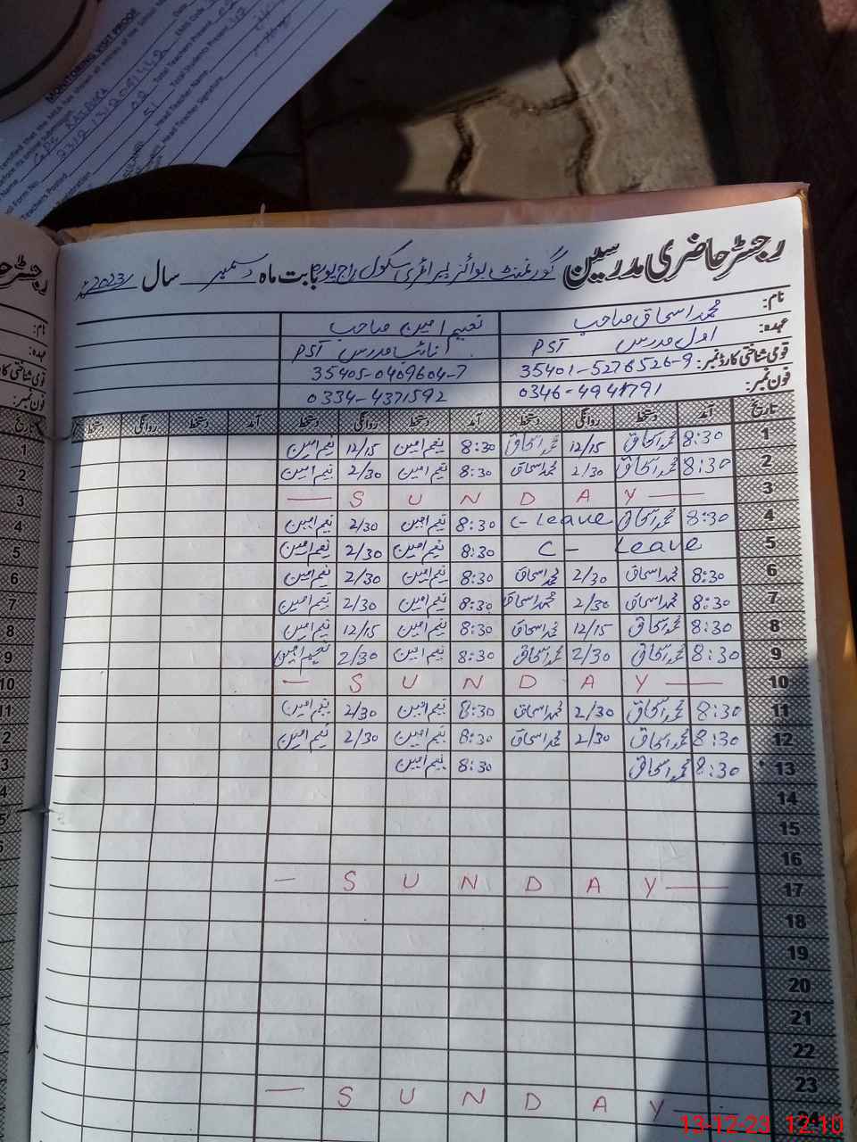 | CNIC | Full Name | Designation | R/C | Absence During Last Calender Month |