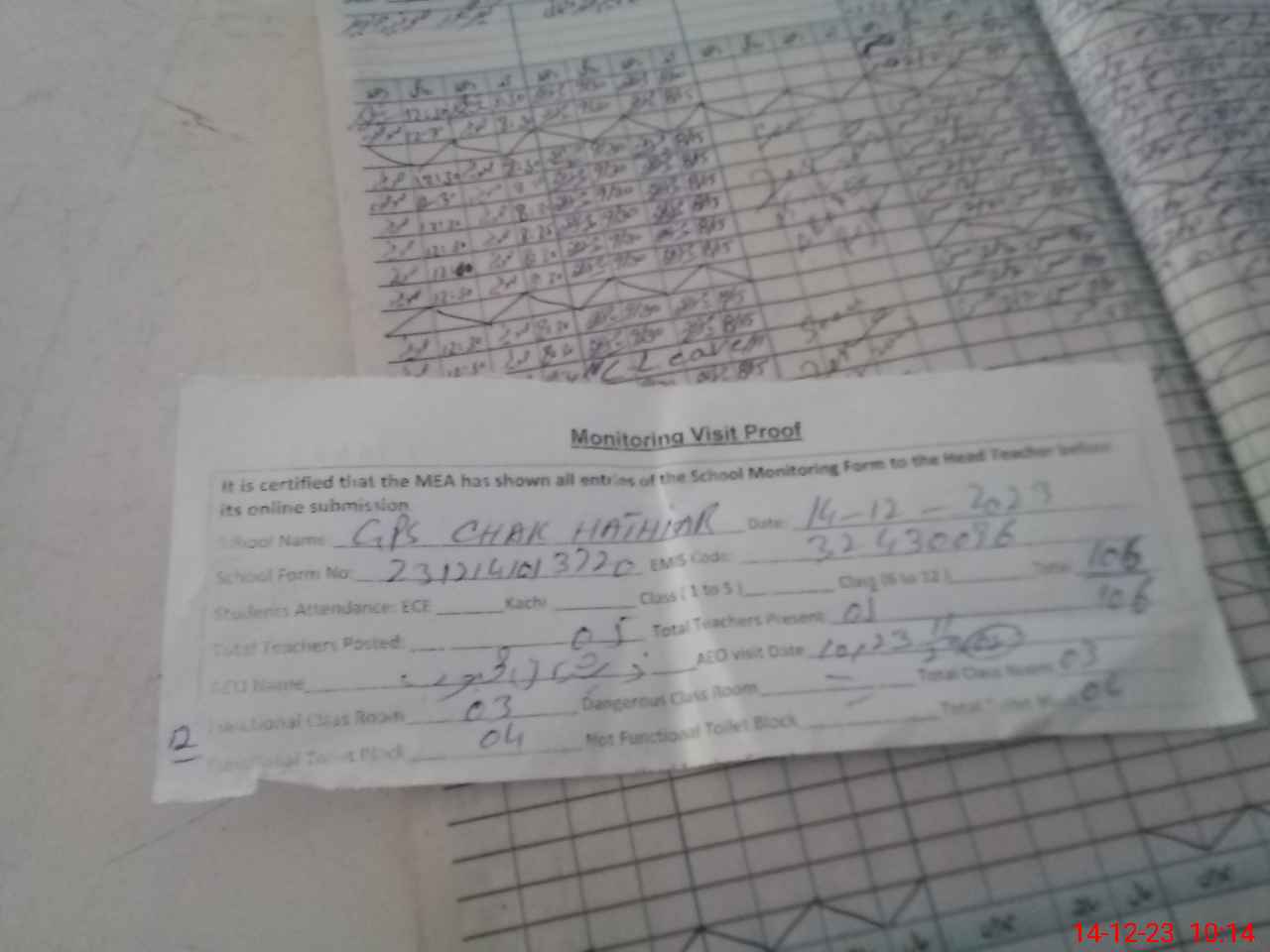| EMIS Code: 32430096 | Name of School: GPS CHAK HATHIAR | |||