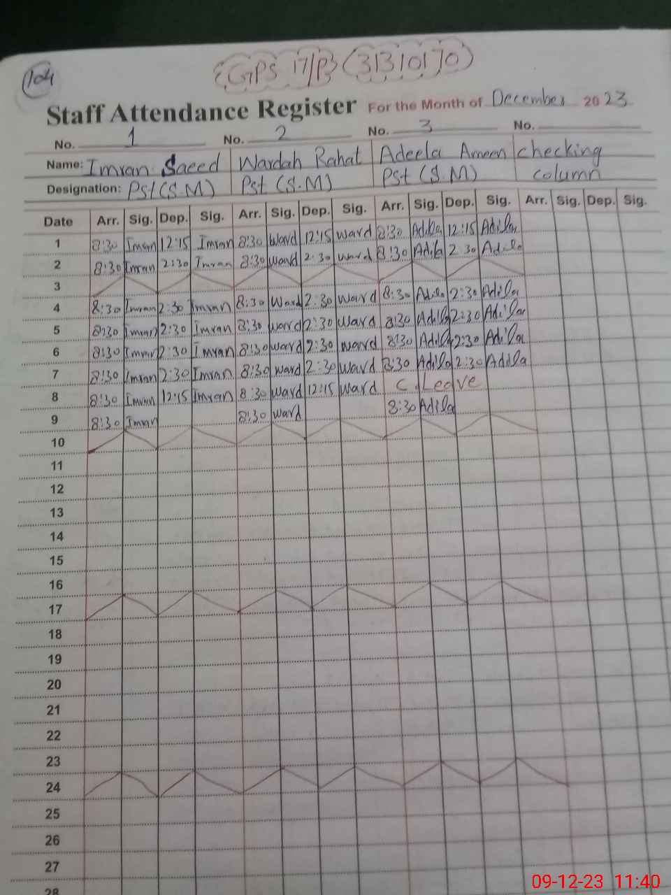 | Name: Im**** Sa**** Designation: (School Headmaster's/Headmistress's) PST Phone/Cell Number: 03**** |