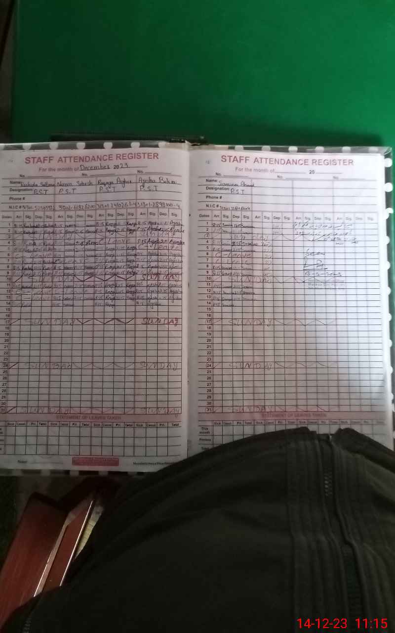 | CNIC | Full Name | Designation | R/C | Absence During Last Calender Month |