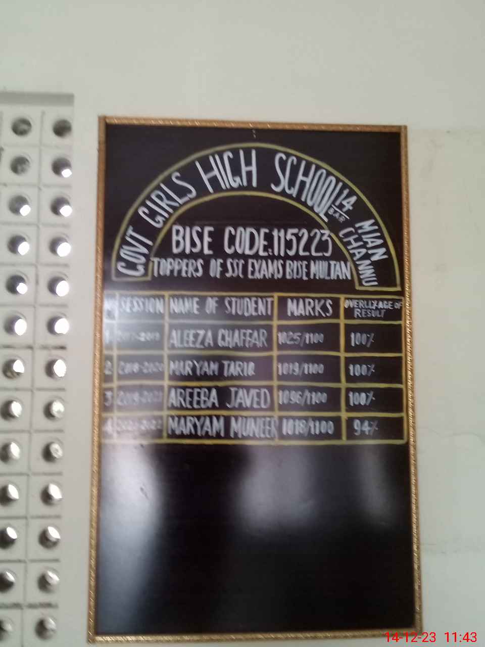 | District: KHANEWAL | Tehsil: MIAN CHANNU | Markaz: SECONDARY-WING | Level: High | |