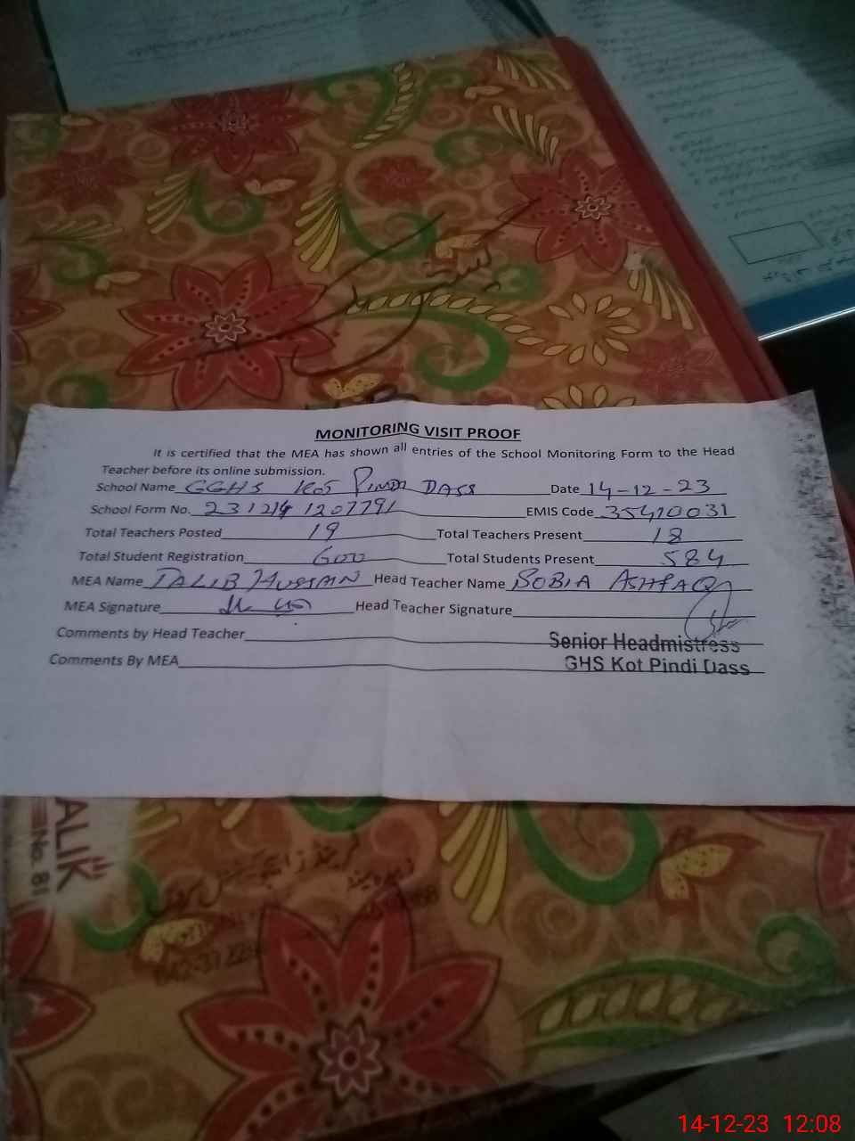 | EMIS Code: 35410031 | Name of School: GGHS KOT PINDI DAS TEH FEROZWALA | |||