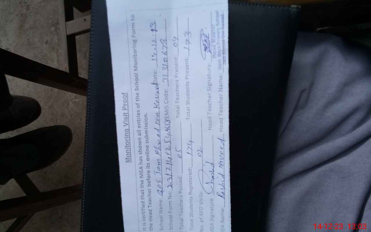 | EMIS Code: 31310678 | Name of School: GPS JAM AHMED AHMED DIN KAVARD | |||