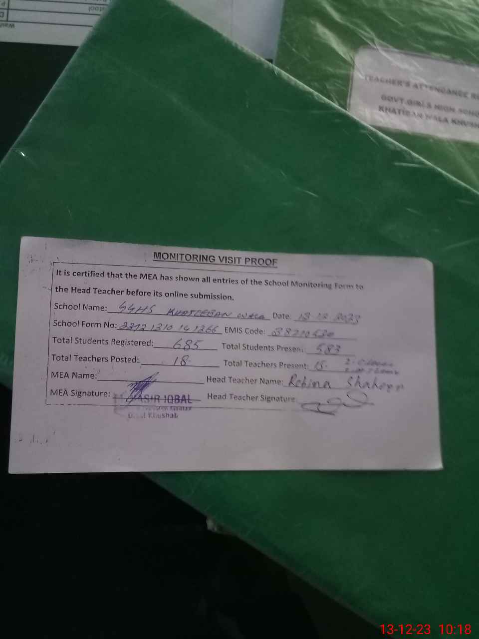 | EMIS Code: 38210530 | Name of School: GGHS KHATEEBAN WALA | |||