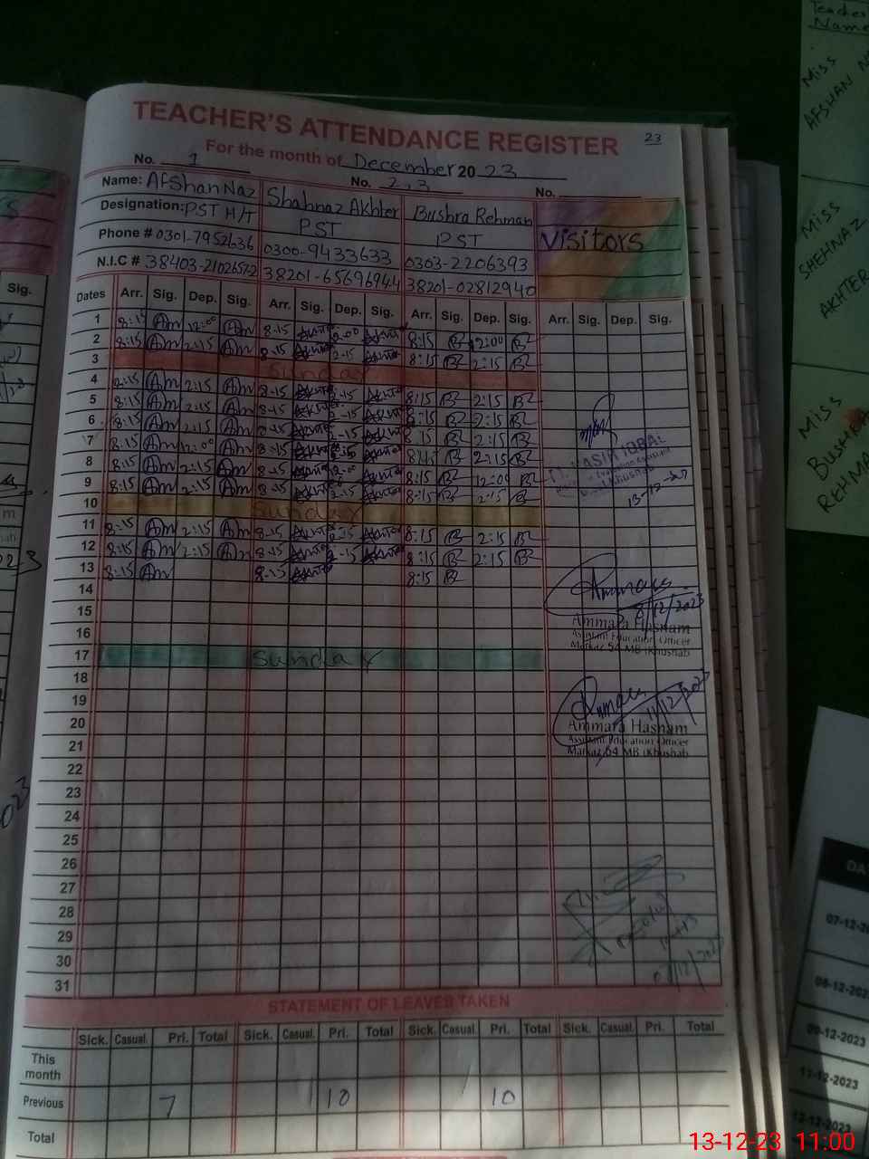 | Name: Af**** Na**** Designation: (School Headmaster's/Headmistress's) PST Phone/Cell Number: 03**** |